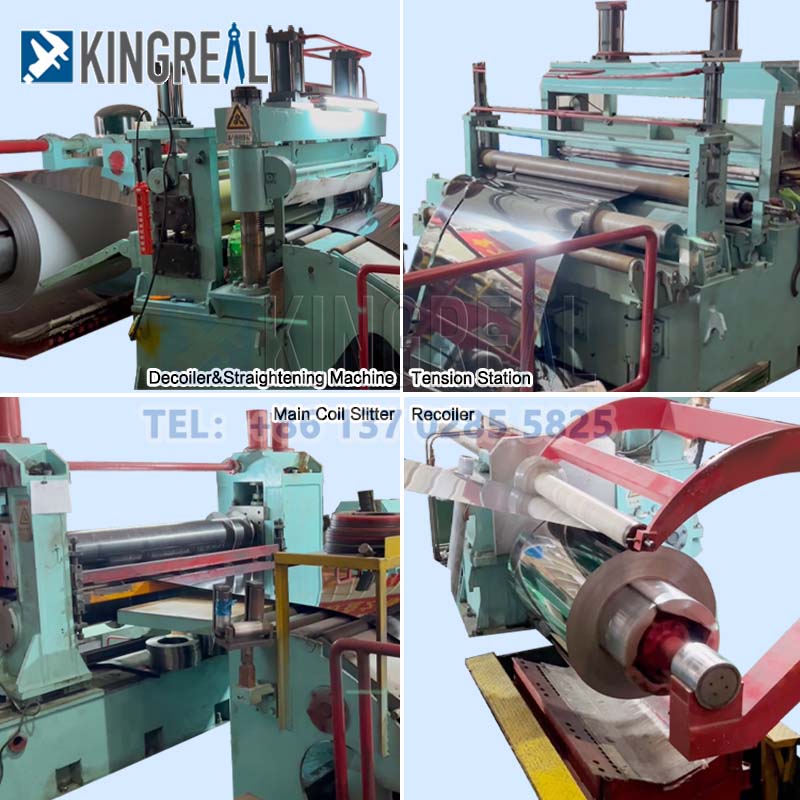 KingReal Steel Slitter Coil Slitting Machine is ontworpen om verschillende materialen te delen, zoals koud gerolde stalen spoelen, warmgewalste stalen spoelen, gegalvaniseerde stalen spoelen, siliciumstalen spoelen, roestvrijstalen spoelen, aluminium spoelen, enz. In specifieke breedtes volgens de productiebehoeften van de klant, en uiteindelijk metaalstroken of coils die terugkomen op de sletter.