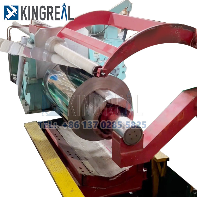 Om een hogere spoelspoelsnelheid te bereiken, neemt KingReal Steel Slitter de spleetmethode van vliegende schaar aan, die de voortgang van continue snij kan realiseren zonder te stoppen met voeding.