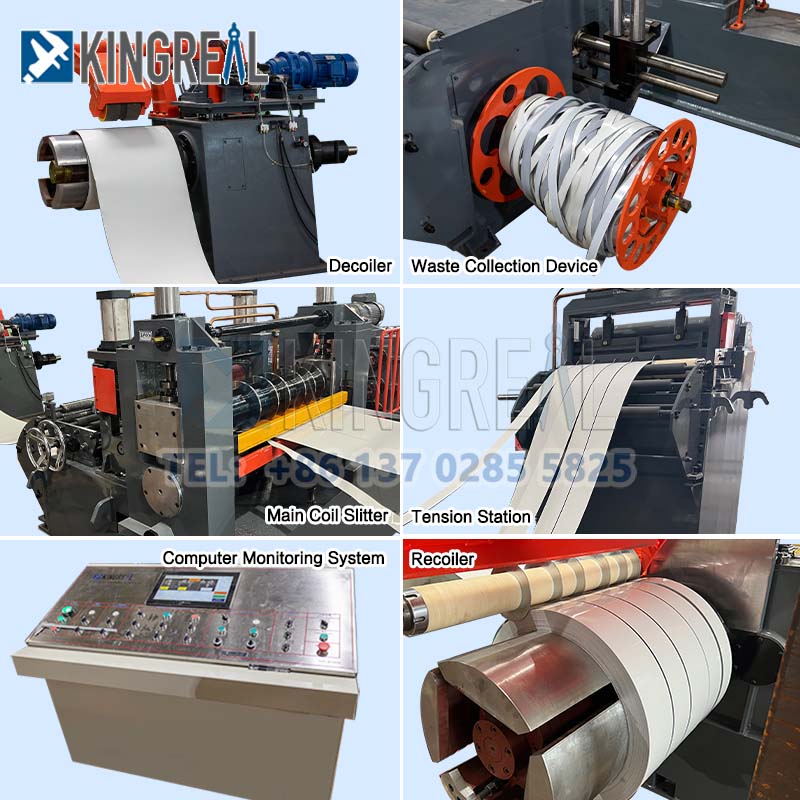 KINGREAL STEEL SLITTER 850MM Steel Coil Slitting Machine is speciaal ontworpen voor 850 mm brede metalen spoelen, waarbij op efficiënte en nauwkeurige wijze smalle strips met hoge precisie worden geproduceerd. KINGREAL STEEL SLITTER streeft ernaar klanten te voorzien van complete productieoplossingen voor het snijden van stalen rollen.